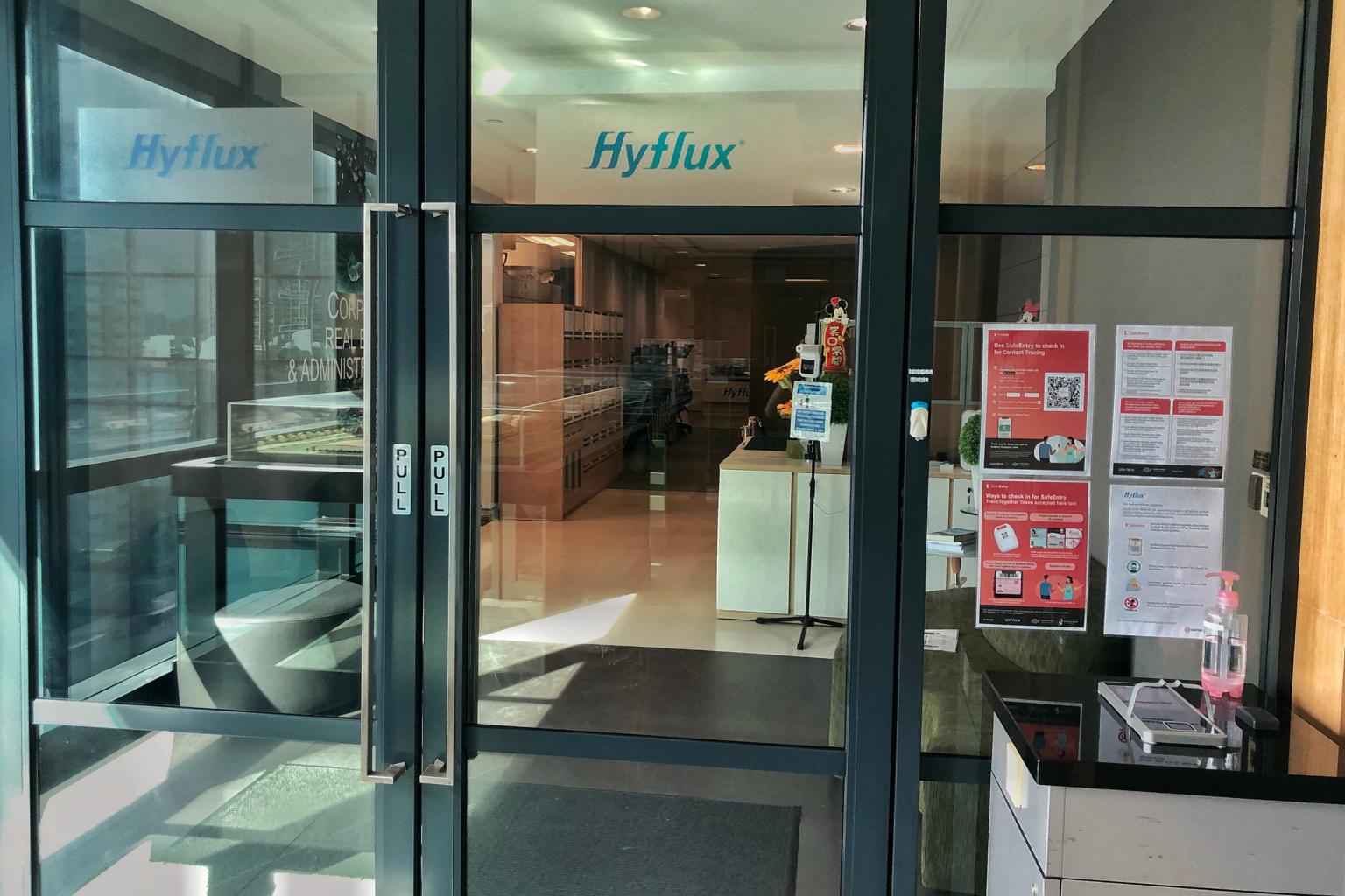 The facade of Hyflux office on the ninth floor of 80 Bendemeer Road on Nov 16, 2020.