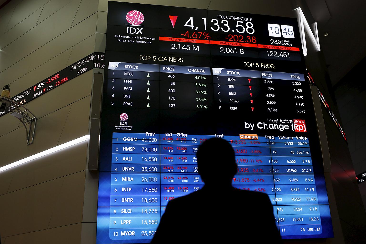 A trader stands in front of an electronic board at the Indonesia Stock Exchange (IDX) in Jakarta on Aug 24, 2015.