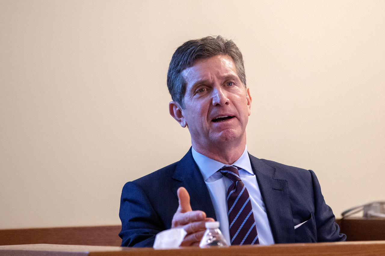 Alex Gorsky, chairman and CEO of Johnson & Johnson, takes the stand in New Jersey Supreme Court in US on Jan 27, 2020.