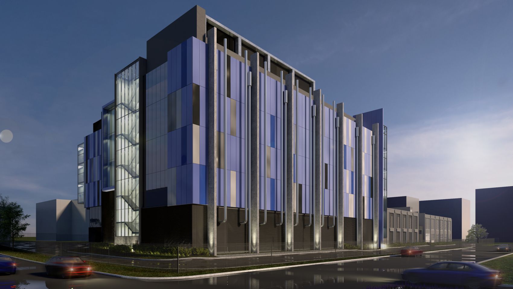 An artist’s impression of the Intellicentre 3 East Data Centre (IC3 East DC) to be built in Macquarie Business Park in Sydney, Australia.