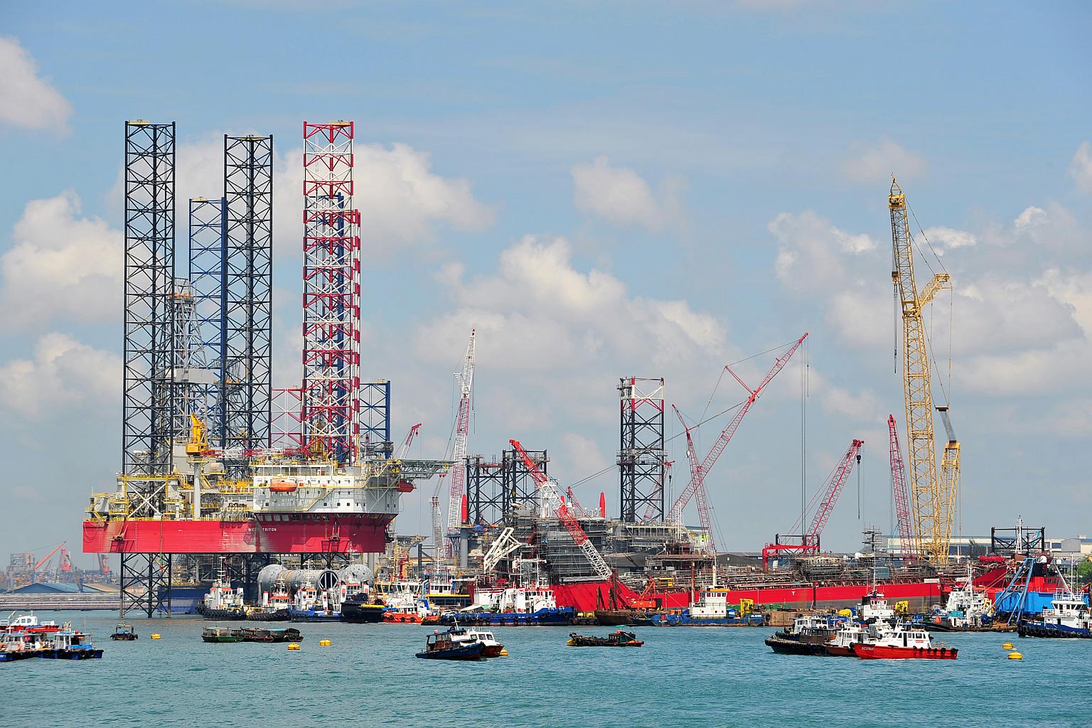 An oil rig at SembCorp Marine PPL shipyard, off the coast near Pandan Industrial Estate.