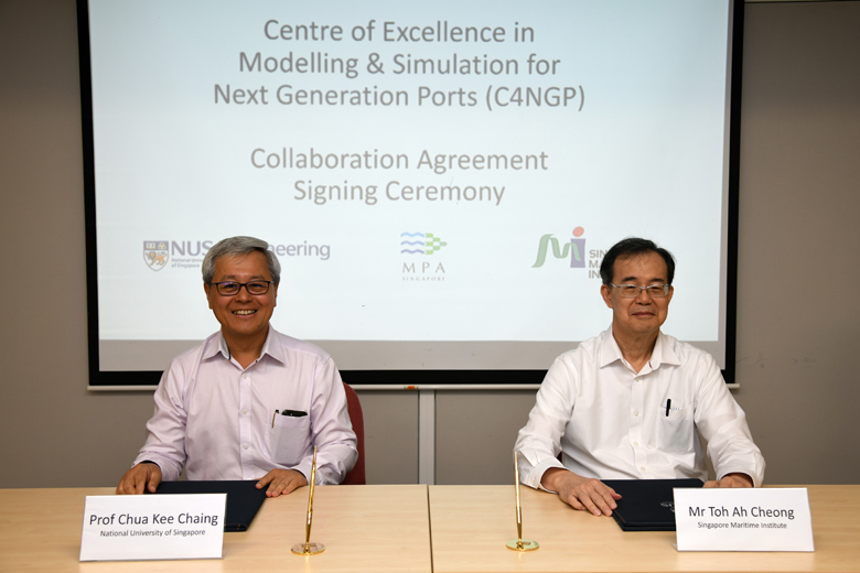 Professor Chua Kee Chaing, dean of the National University of Singapore's Faculty of Engineering, and Mr Toh Ah Cheong, executive director of Singapore Maritime Institute, at the signing of the agreement to set up the Centre of Excellence in Modelling and Simulation for Next Generation Ports.