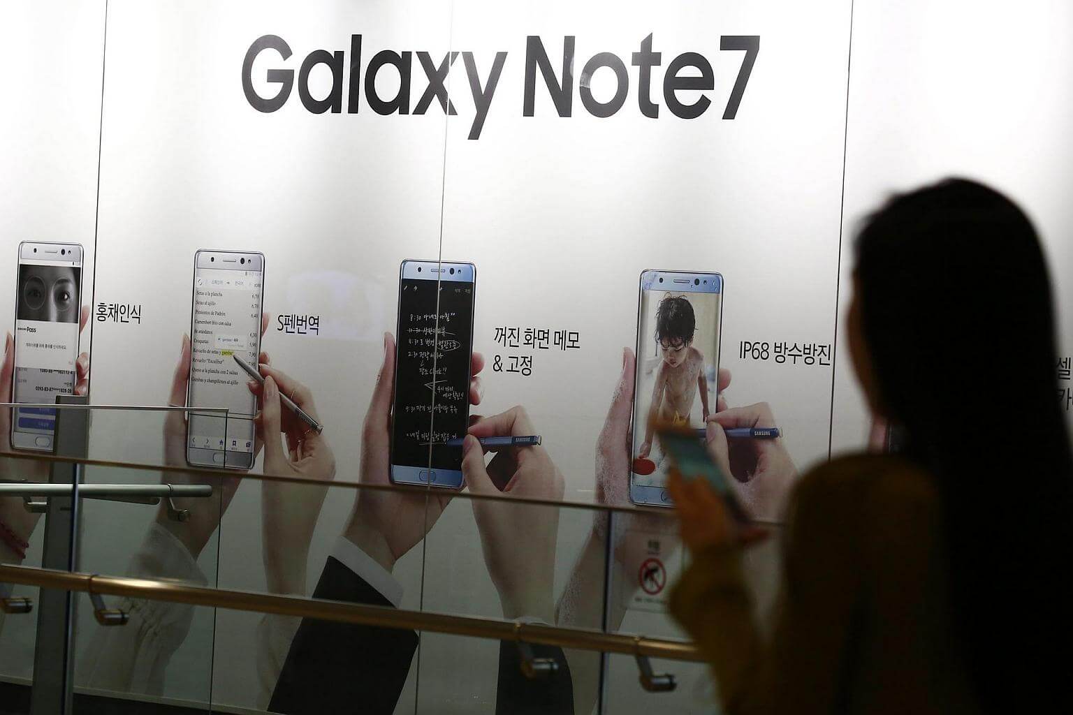 A South Korean woman walks next to an advertisement of the Samsung Galaxy Note7 at the Samsung Electronics headquarters in Seoul.