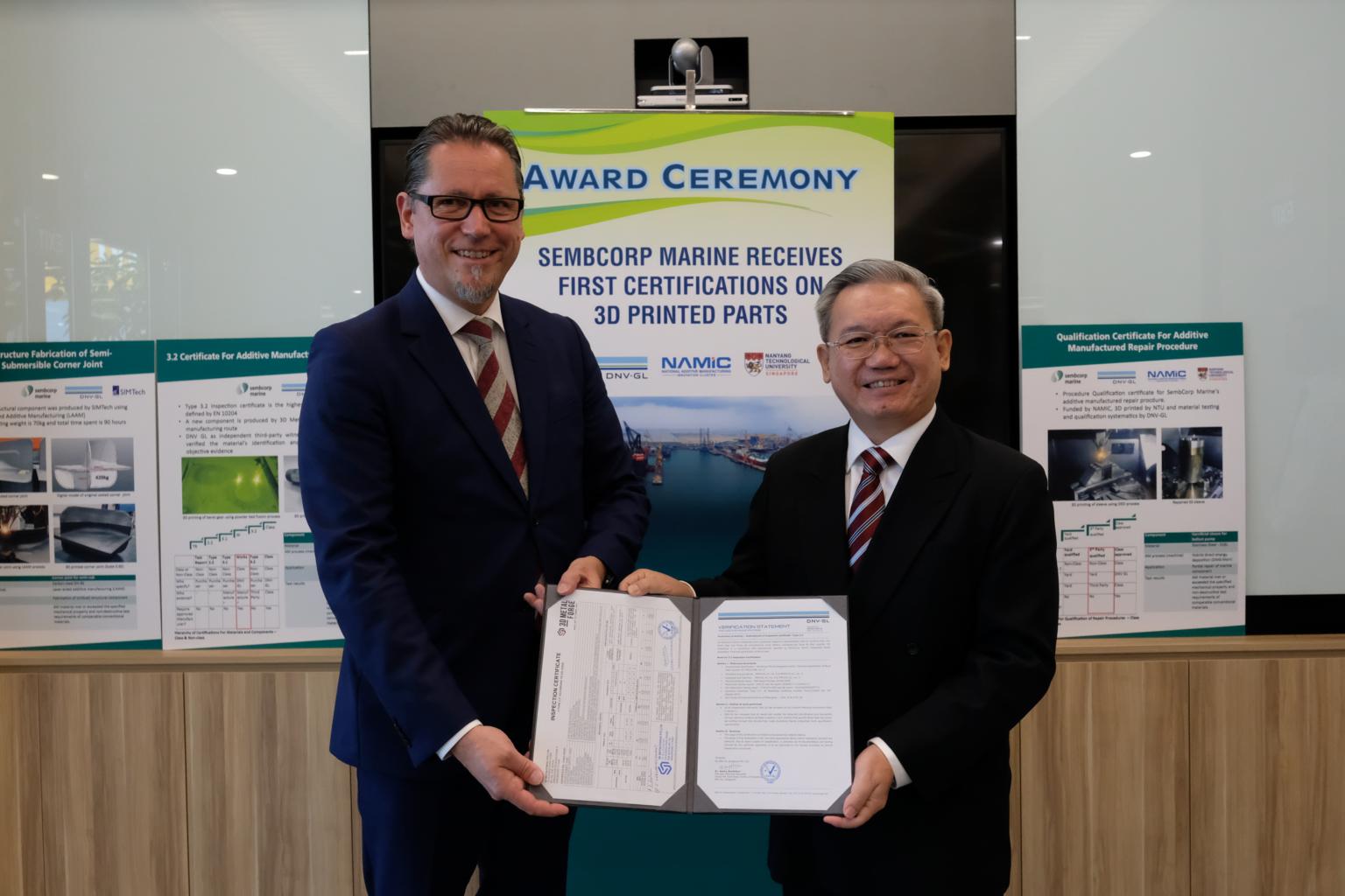 SembMarine president and CEO Wong Weng Sun said: "The DNV GL certifications help us work towards a 3D-printing regime that lets SembMarine custom-make components, improve their design and quality, and mitigate external procurement constraints on cost, lead time and availability - for instance, parts for a repair job that may be expensive, obsolete, not in stock or no longer in production."