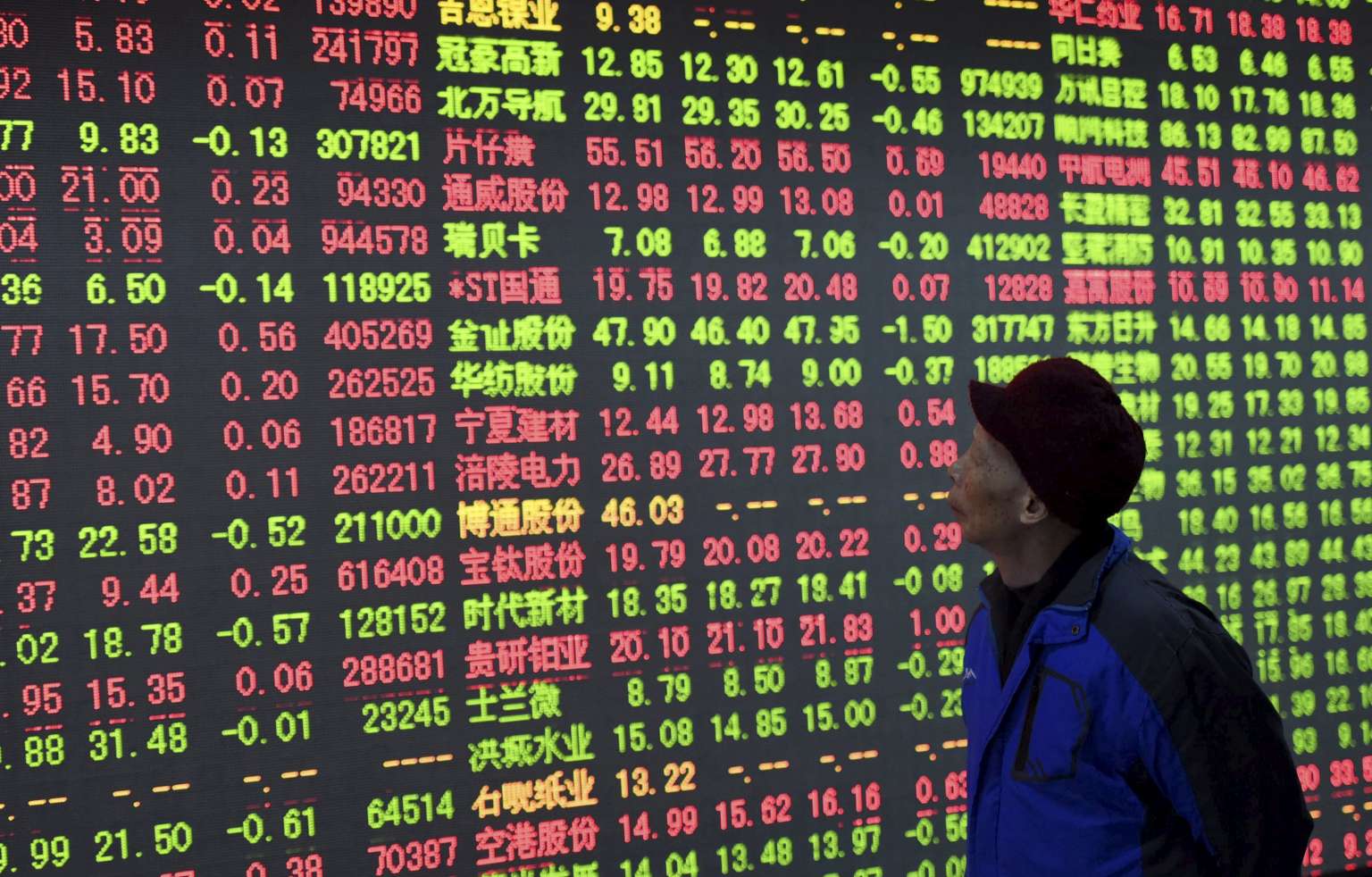 An investor looks at an electronic board showing stock information at a brokerage house in Hangzhou, Zhejiang province, China, on Dec 2, 2015.