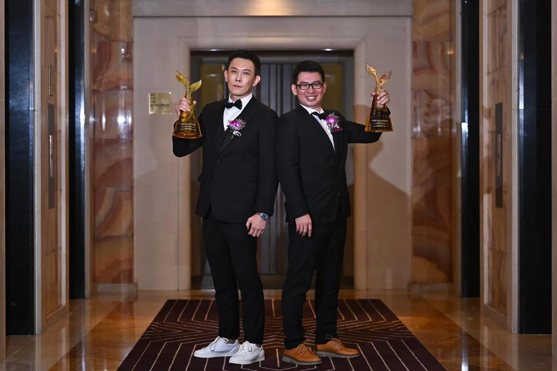 Mr Thong Yong Hin (left) was named overall winner of the Established Entrepreneur category, while Mr Lawrence Luan was the overall winner of the New Entrepreneur category.