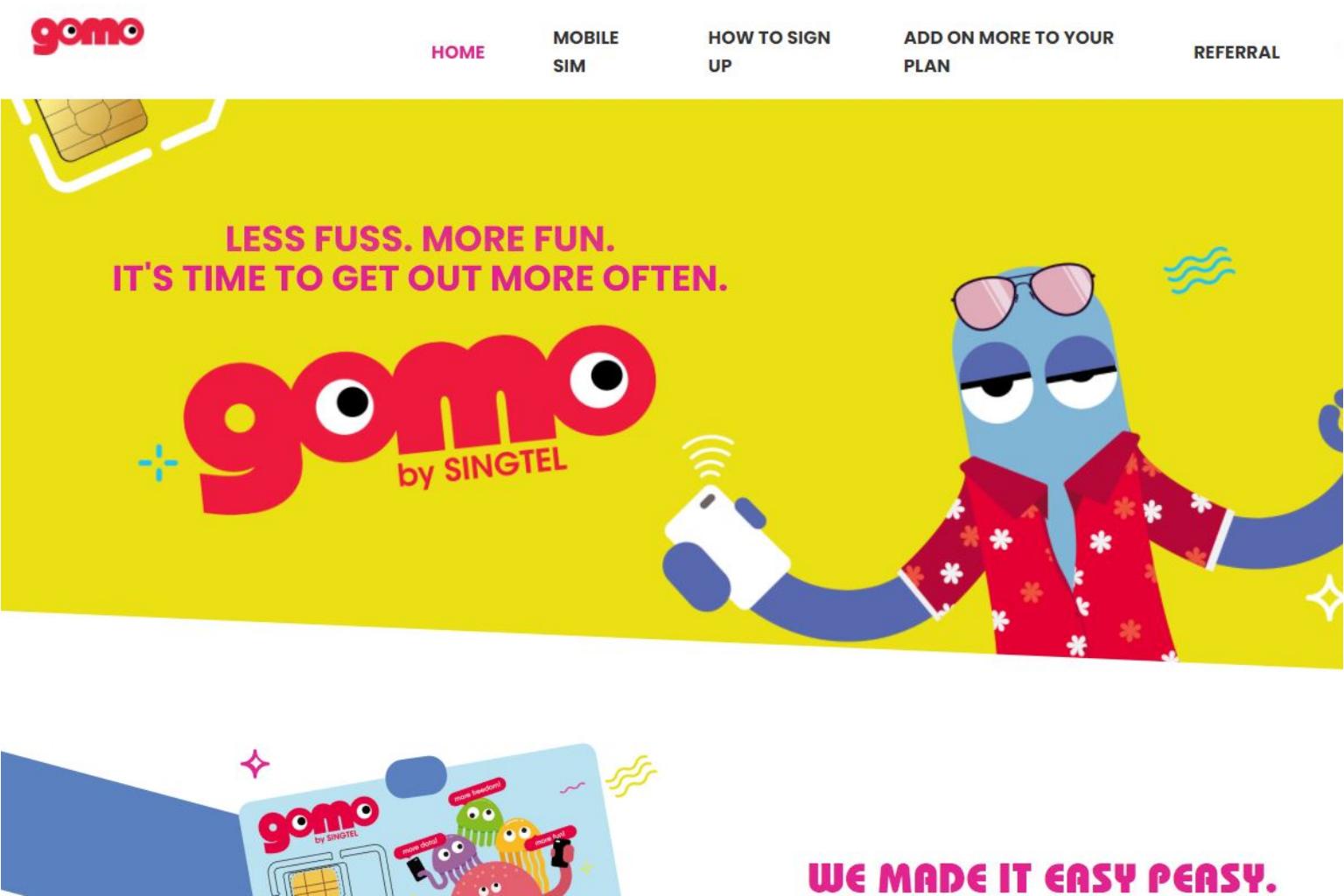 Gomo's contract-free SIM-only plan is already offered in Singapore, backed by Singtel's 4G network.