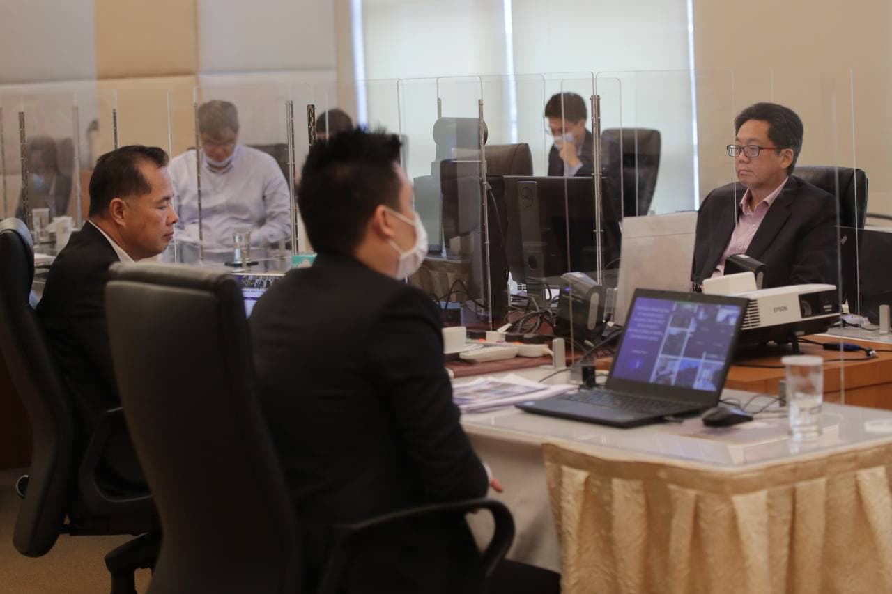 SPH CEO Ng Yat Chung (extreme right) and CFO Chua Hwee Song (left) in a virtual media conference at SPH News Centre on Aug 2, 2021.