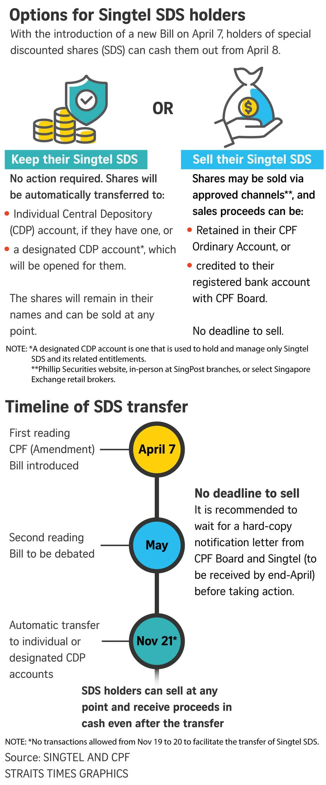 If the Bill is passed, SDS holders with individual CDP accounts will have their Singtel SDS automatically transferred to their CDP accounts on Nov 21.