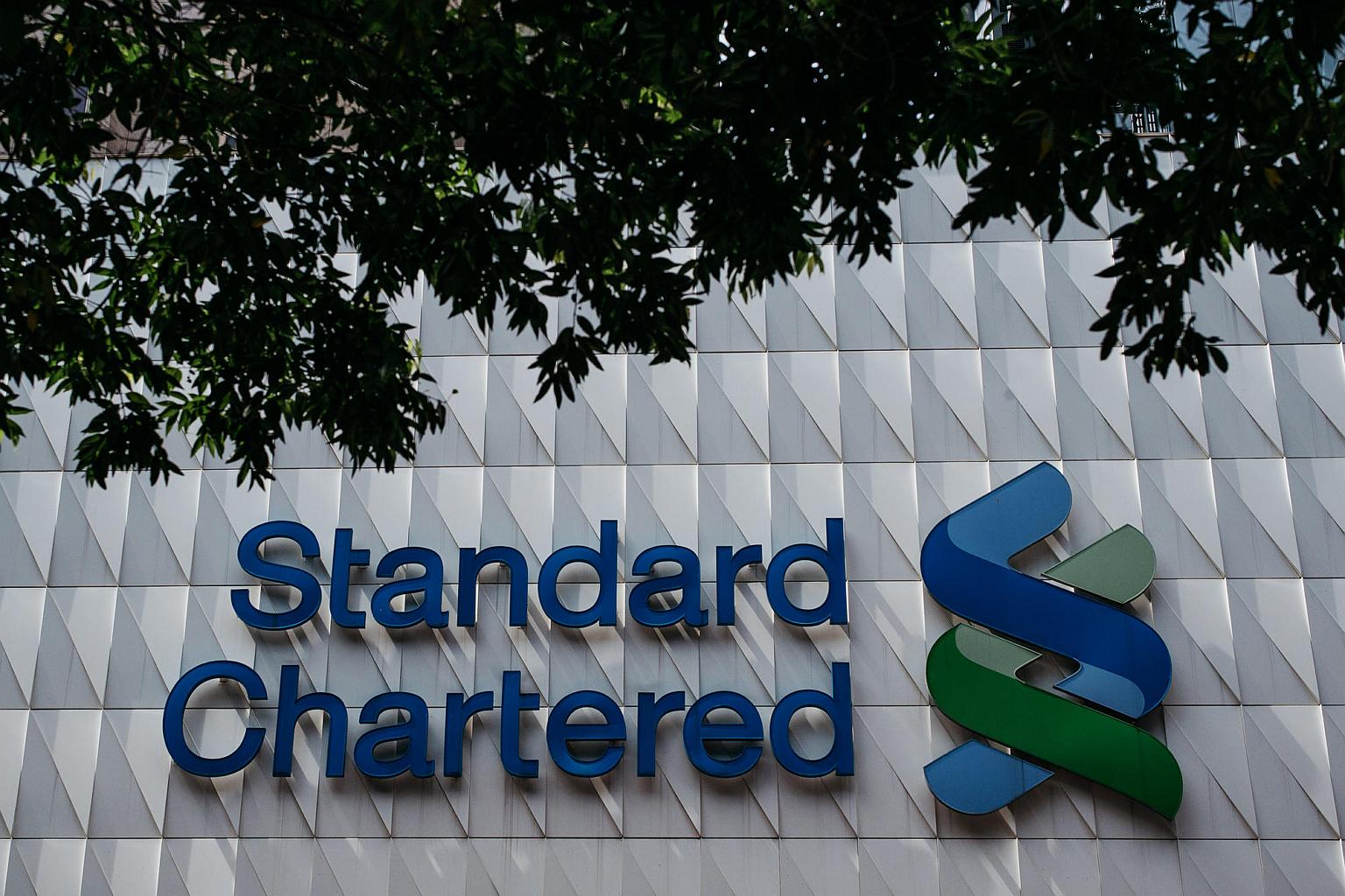 Standard Chartered logo is displayed at the bank's headquarters building in the Central district of Hong Kong, China, on June 27.