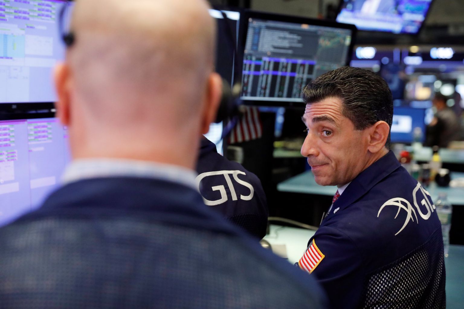 Traders work on the floor of the New York Stock Exchange shortly after the opening bell.
