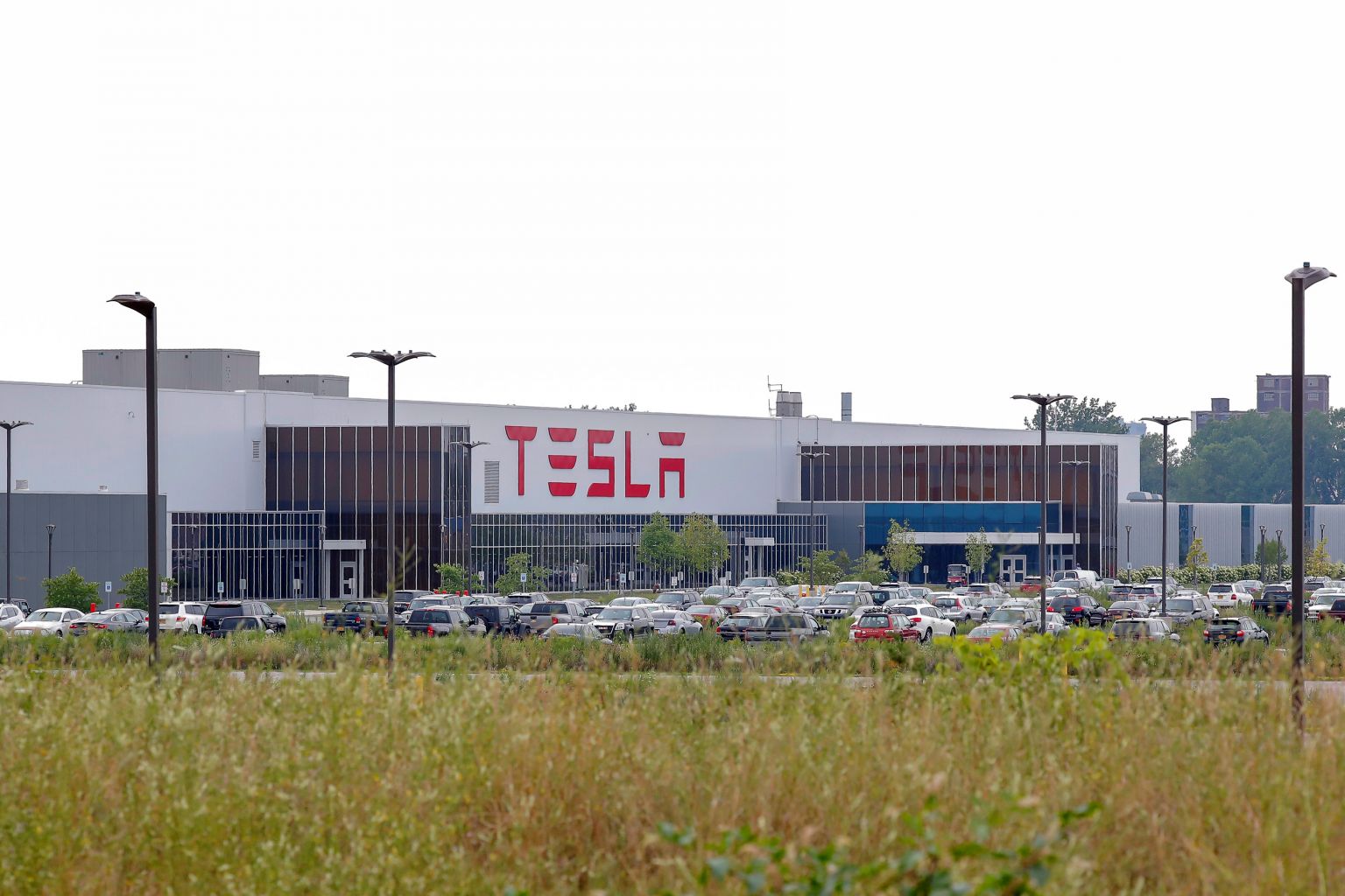 Cars are parked outside the Tesla's Gigafactory 2, in Buffalo, New York, US, on Aug 3, 2018.