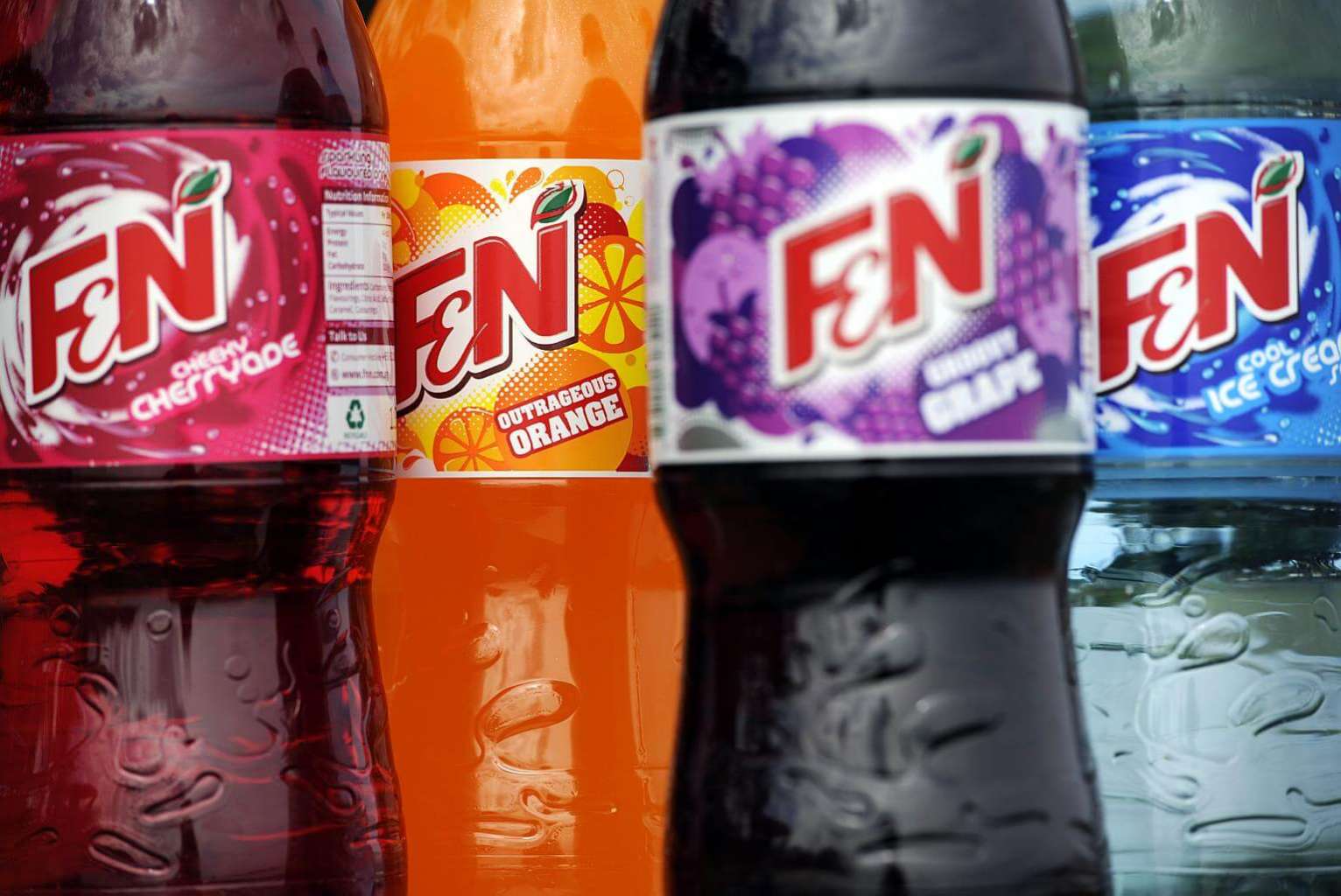 Bottles of F&N (Fraser & Neave) aerated or soft drinks.