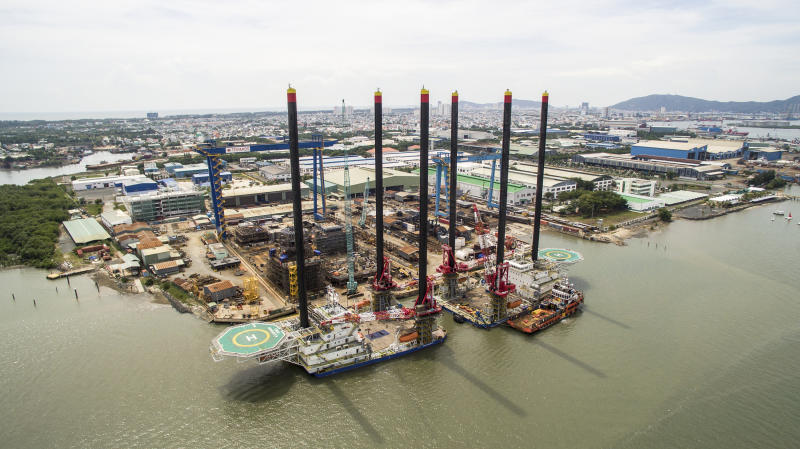 Aerial view of a Triyards shipyard in Vietnam.