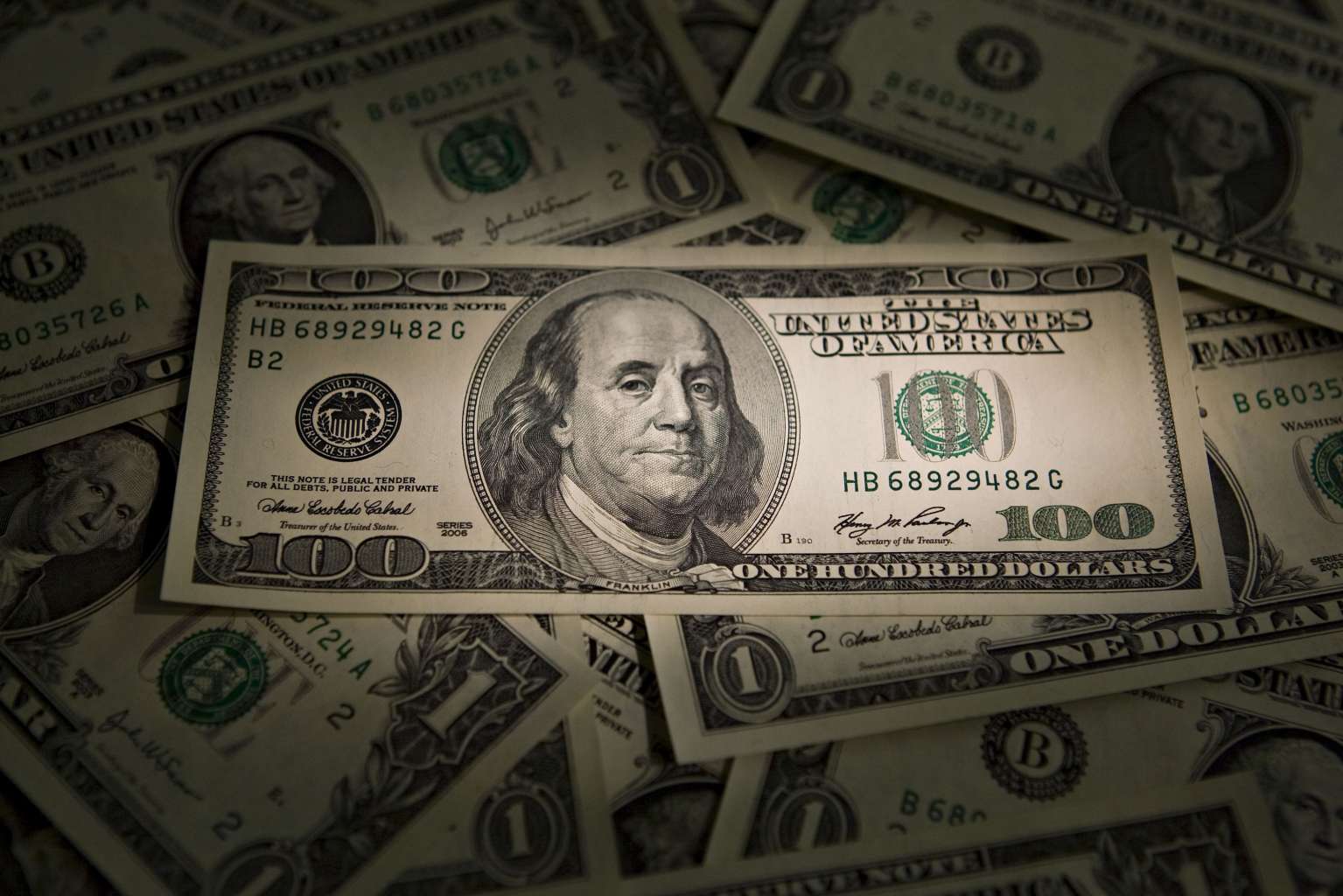 A US one hundred dollar bill is displayed for a photograph with other US notes in New York.
