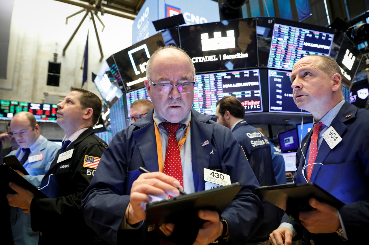 Traders work on the floor at the New York Stock Exchange in New York on Feb 25, 2020.