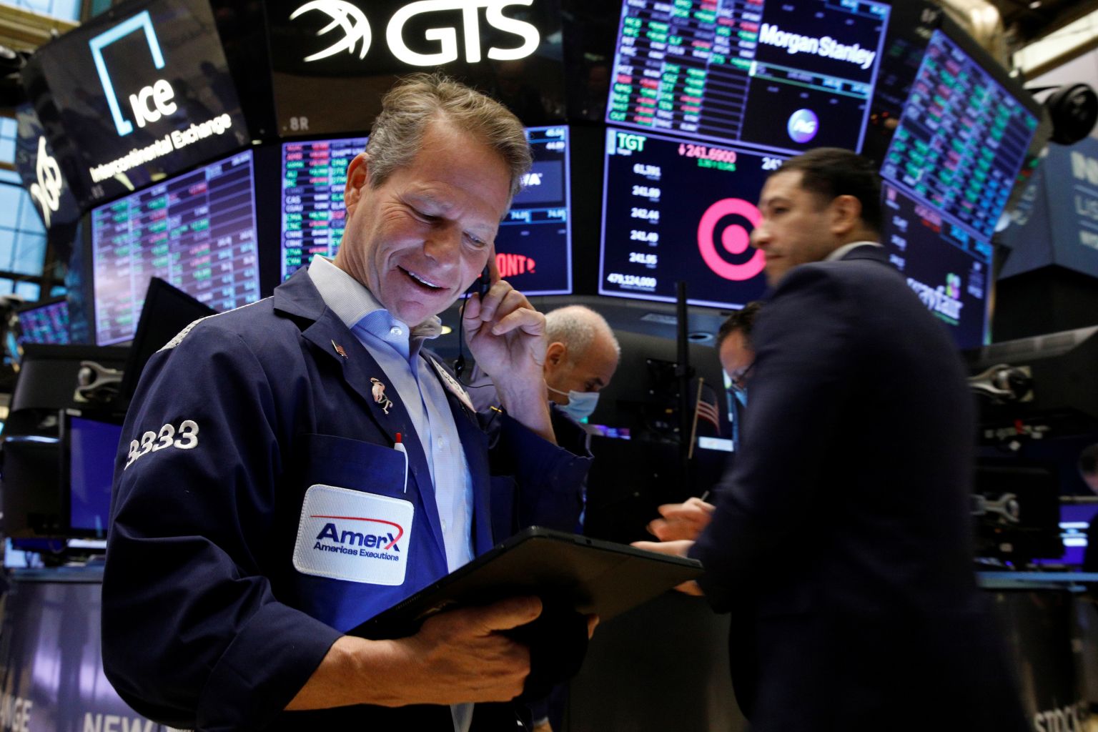 Traders work on the floor of the New York Stock Exchange on Dec 2, 2021.