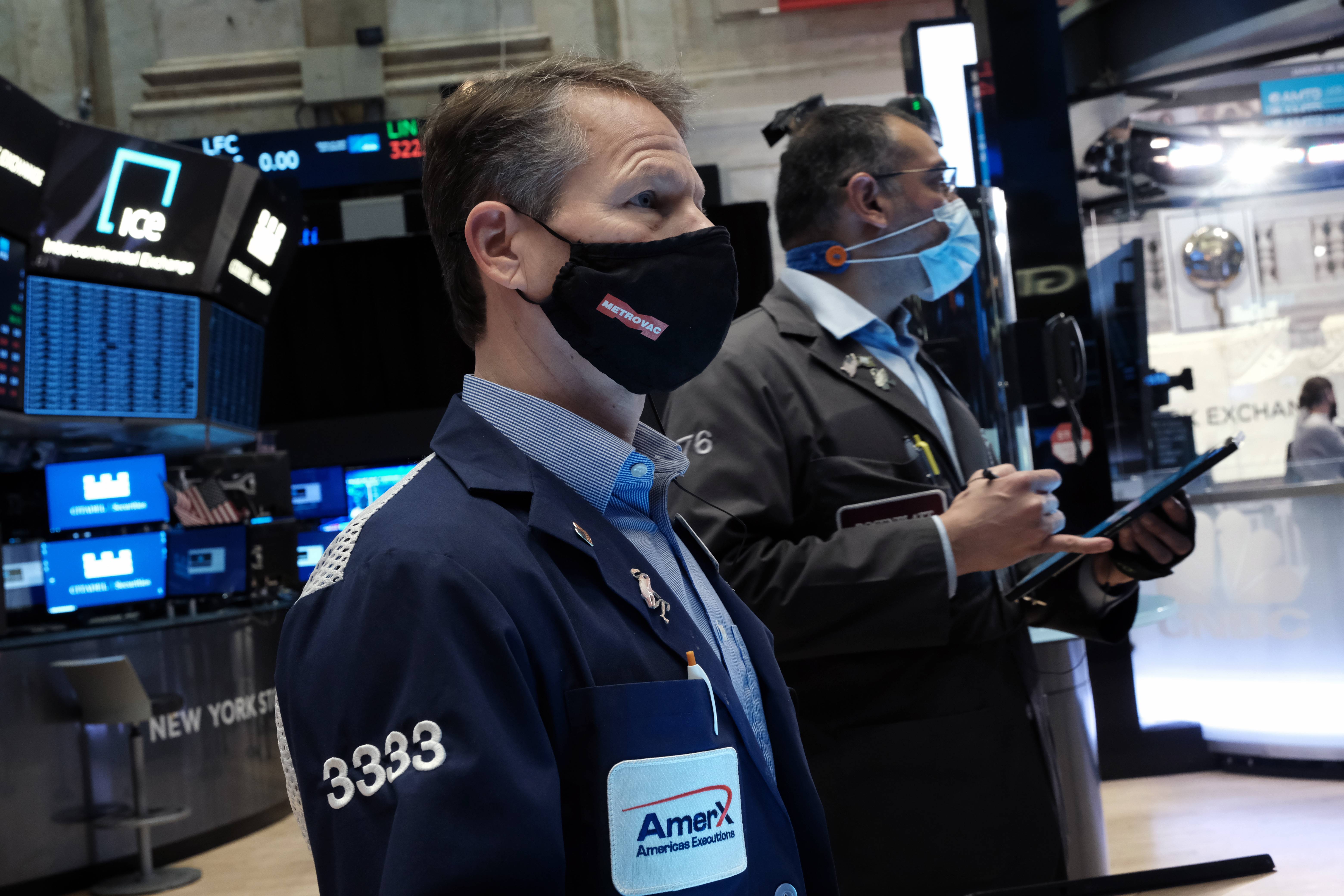 Traders work on the floor of the New York Stock Exchange on Jan 20, 2022, in New York City.