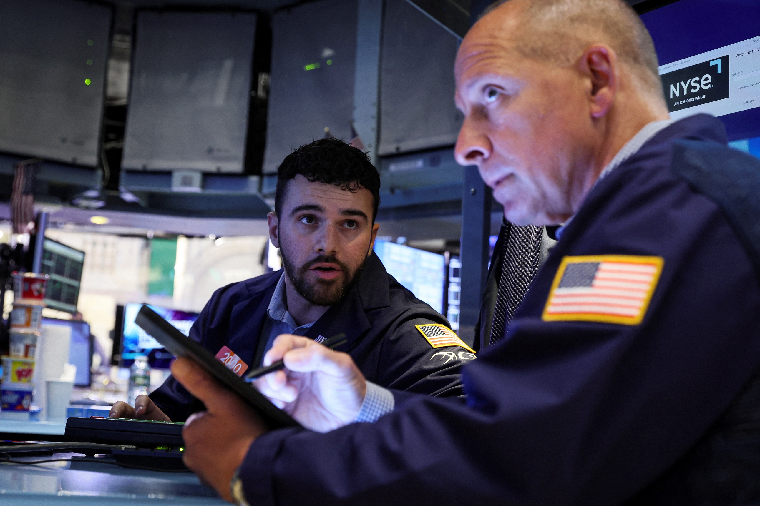 Traders work on the floor of the New York Stock Exchange, on July 26, 2022.