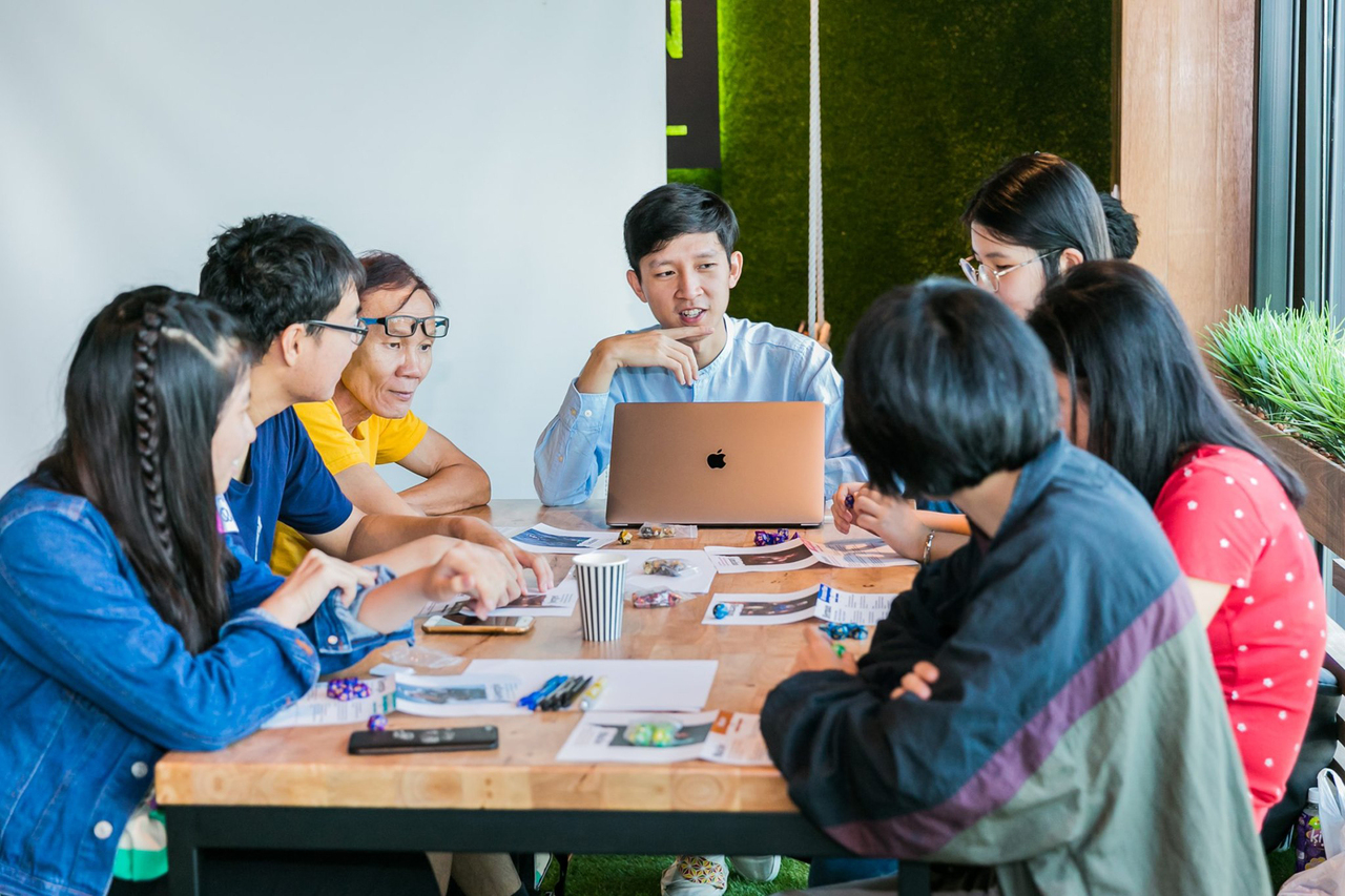 Mr Louis Puah (centre) facilitating a role-playing game on issues related to at-risk youth in Singapore in 2019.