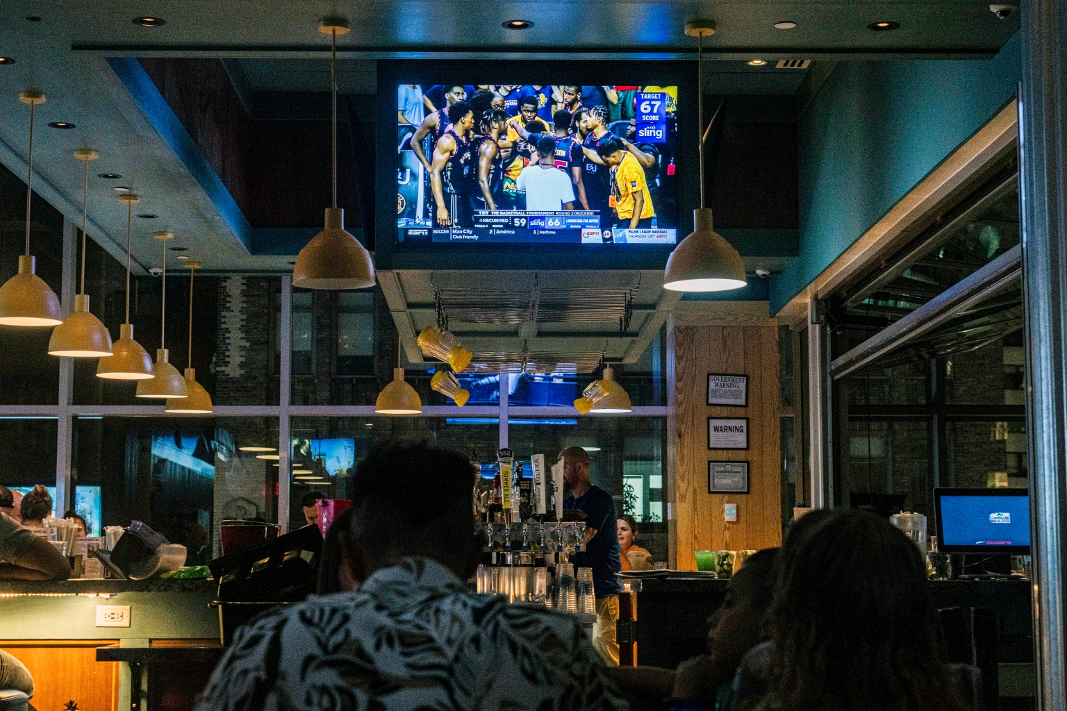 Patrons watch a basketball game at a bar in Manhattan, New York, on July 20, 2022.