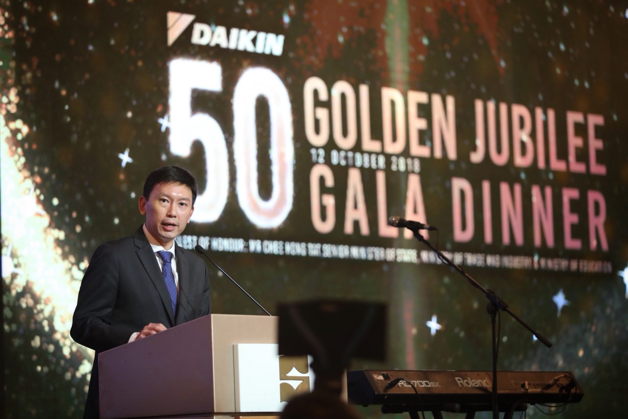 Senior Minister of State for Trade and Industry and Education Chee Hong Tat at Daikin Singapore's 50th anniversary gala dinner on Oct 12, 2018.