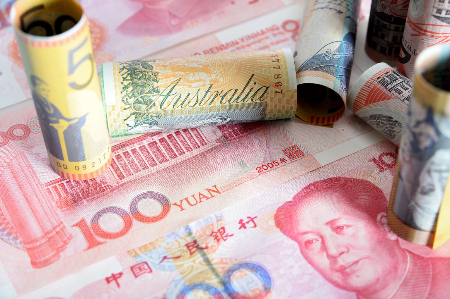Australian and Chinese banknotes. Australia left interest rates unchanged on Tuesday (Oct 6) as the local dollar recorded the biggest drop among major currencies last quarter, cushioning the impact of a weaker outlook in China.