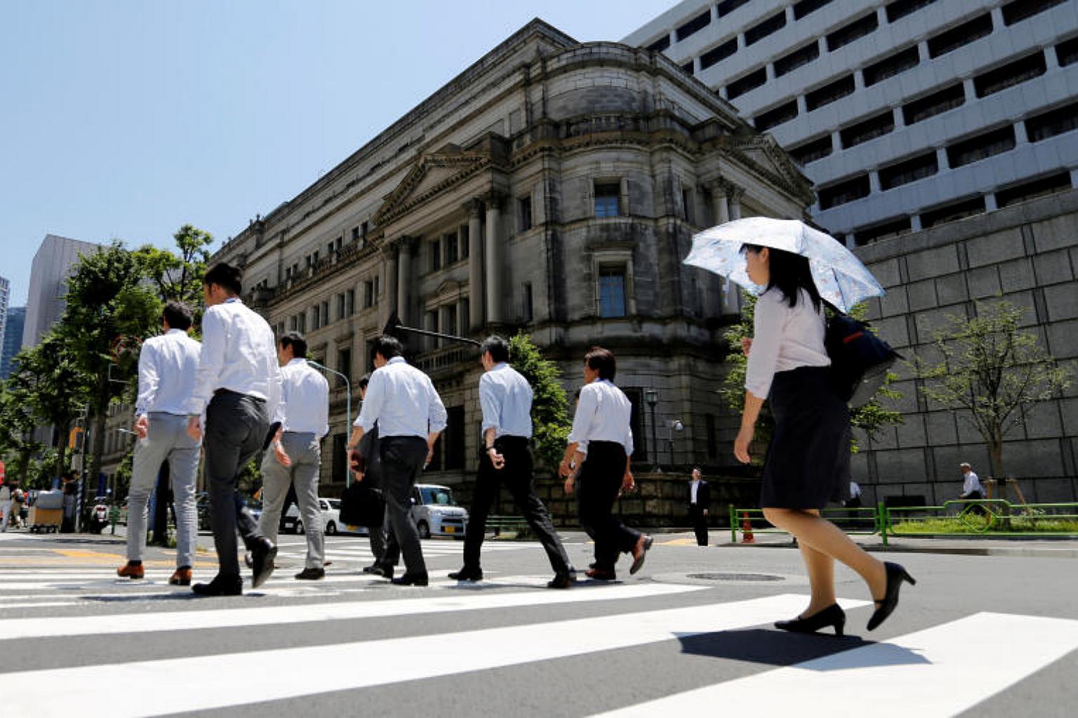 People walk past the Bank of Japan building in Tokyo, Japan June 16, 2017.