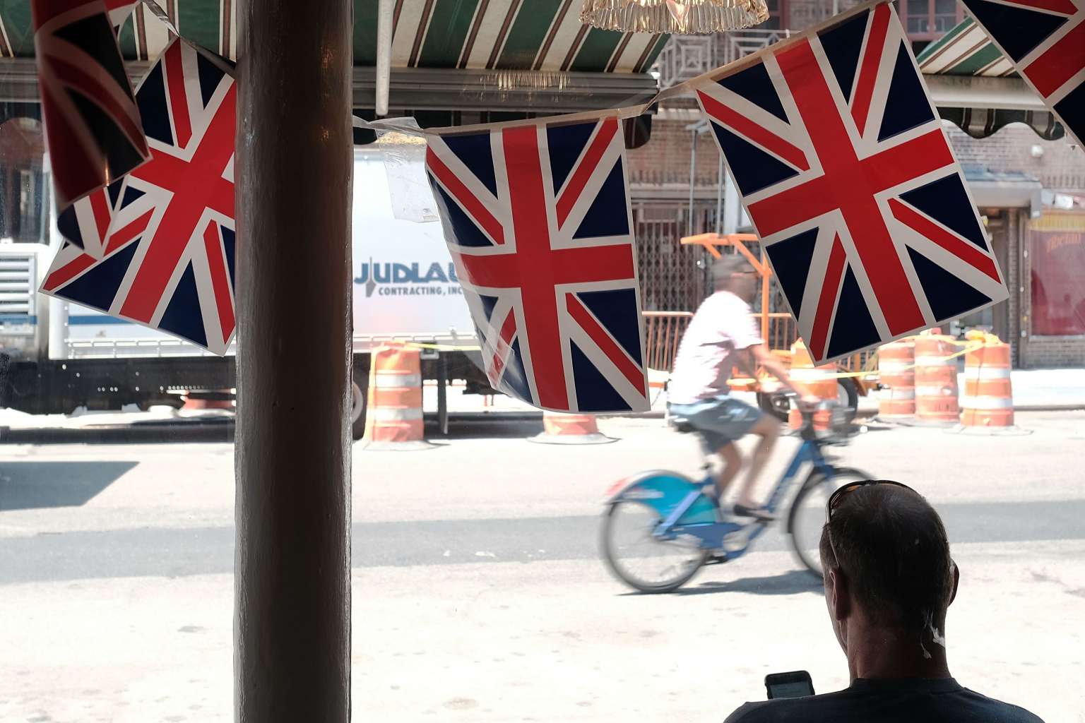 British flags hang from the ceiling of the popular British restaurant and grocery Tea & Sympathy in Manhattan on June 24, 2016 in New York City.