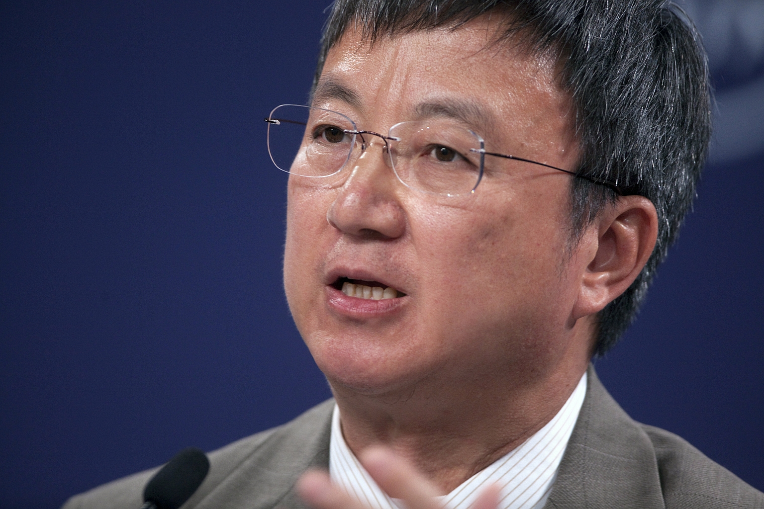 Zhu Min, deputy managing director of the International Monetary Fund, speaks during a panel discussion at the World Economic Forum Annual Meeting of the New Champions in Dalian.