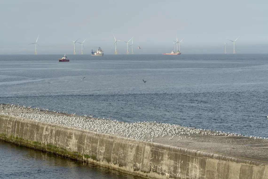 An offshore wind farm in Aberdeen, Scotland, in 2021.