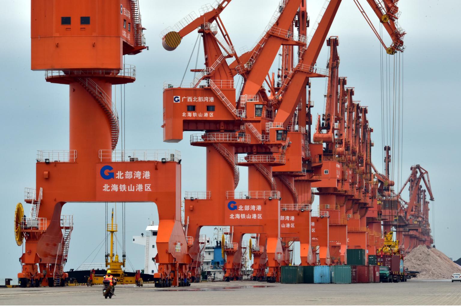 Containers are seen at a port in Beihai, Guangxi province, China.