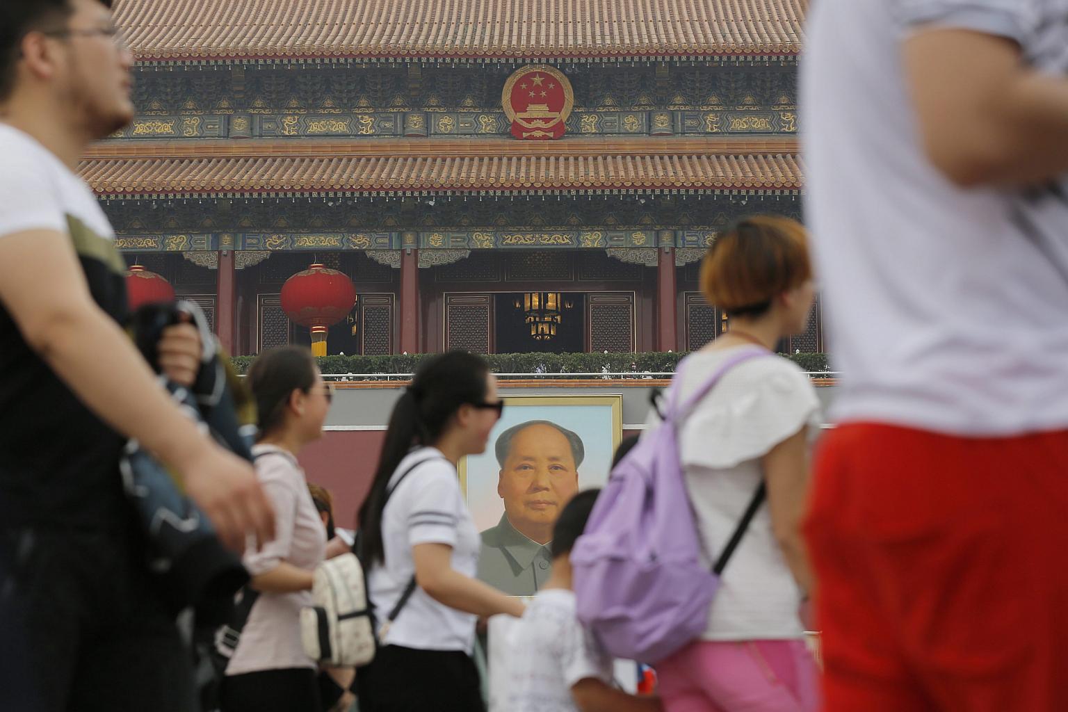Tourists gather in front of the Tiananmen Gate during Labour Day in Beijing.