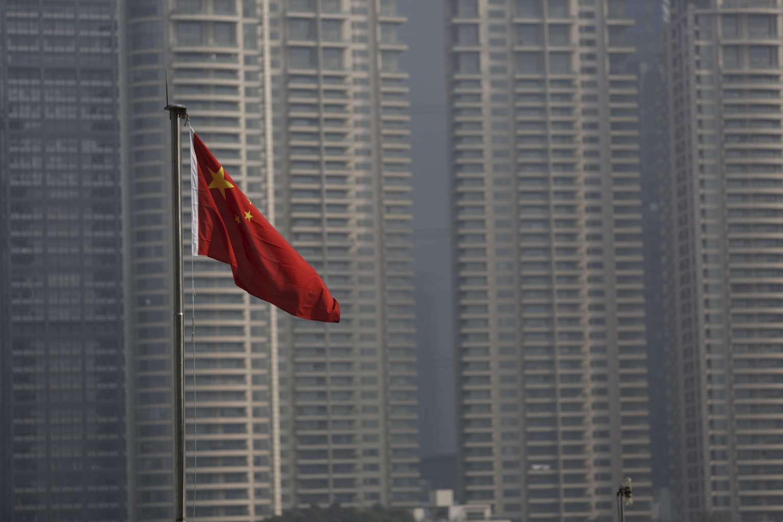 A Chinese flag is seen in front of the financial district of Pudong in Shanghai, on Jan 19, 2016.