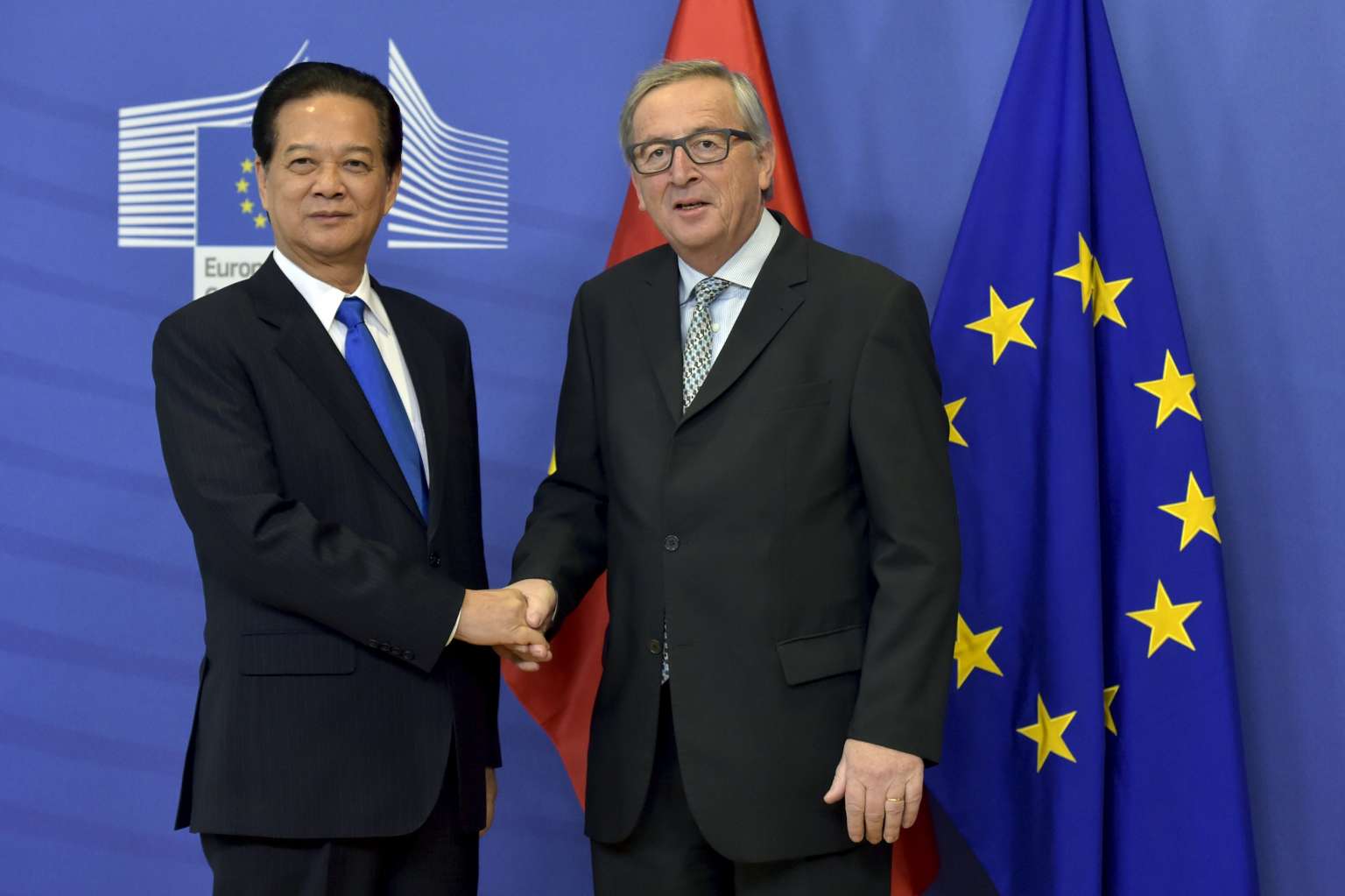 Juncker (right) welcomes Vietnamese Prime Minister Nguyen Tan Dung to Brussels.