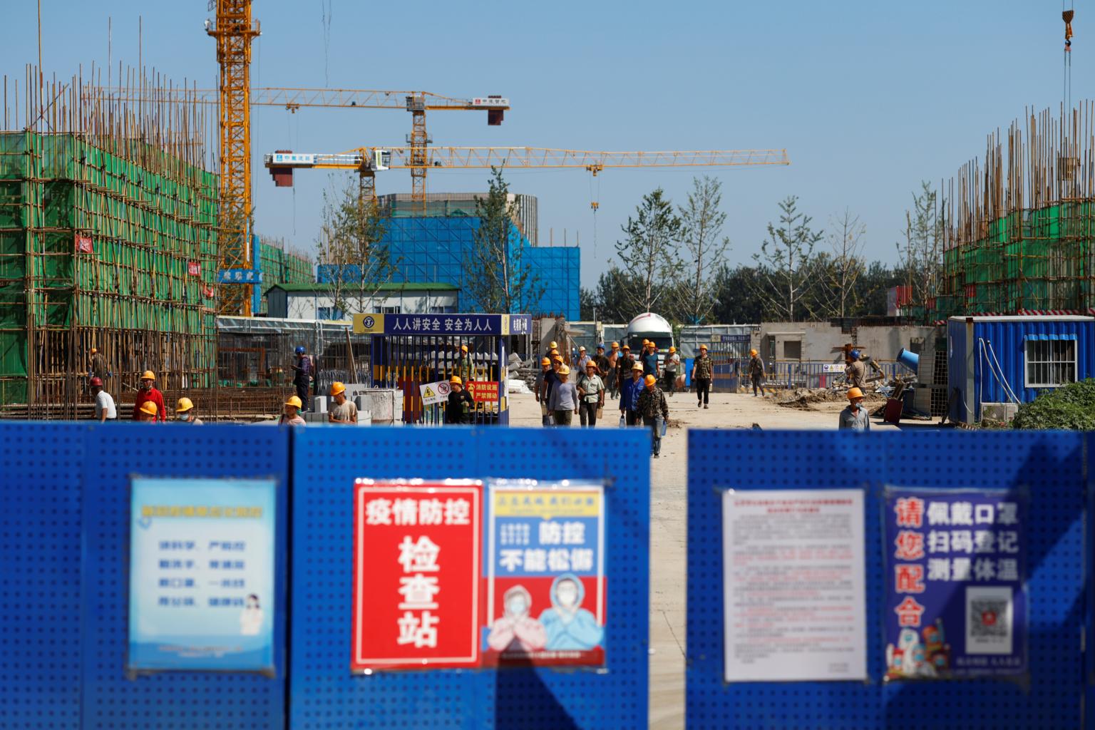 Workers inside the construction site of a project developed by China Evergrande Group in Beijing on Sept 22, 2021.