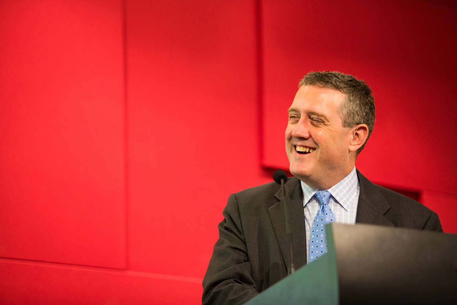 James Bullard, president of the Federal Reserve Bank of St. Louis, reacts during the Singapore City Lecture in Singapore.