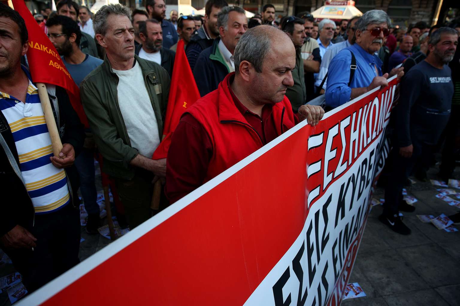 Demonstrators protest against reforms on the pension and the tax system by the Greek government in Athens, Greece on May 7, 2016.