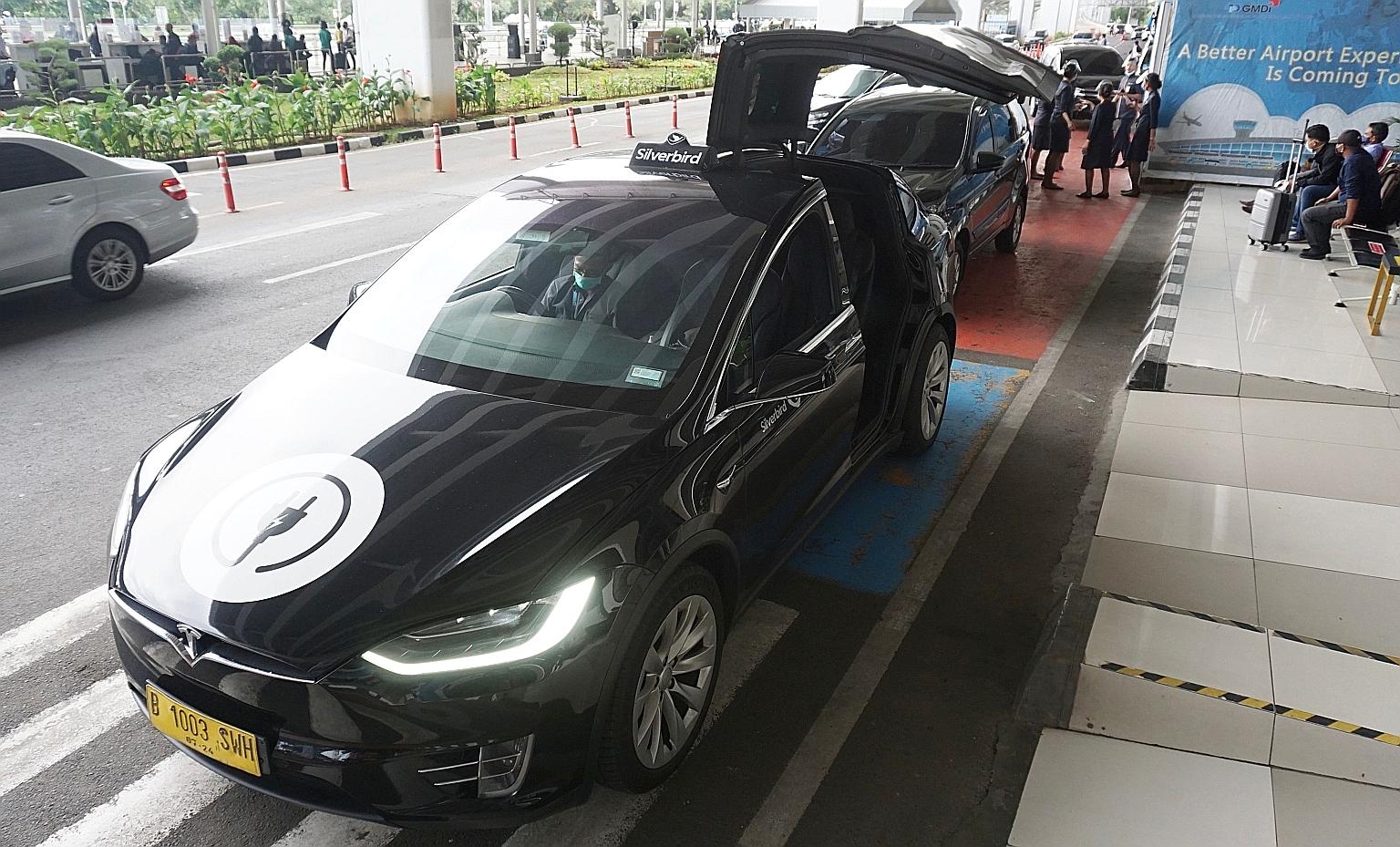 A Tesla Model X airport taxi at Jakarta's Soekarno-Hatta International Airport. Innovation and digital reform must go beyond individual businesses to include an all-of-industry response, says the writer.