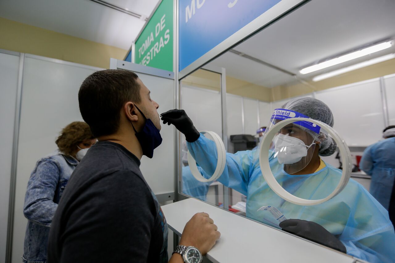 A health worker takes a swab sample at Tocumen International Airport in Panama on Oct 12, 2020.