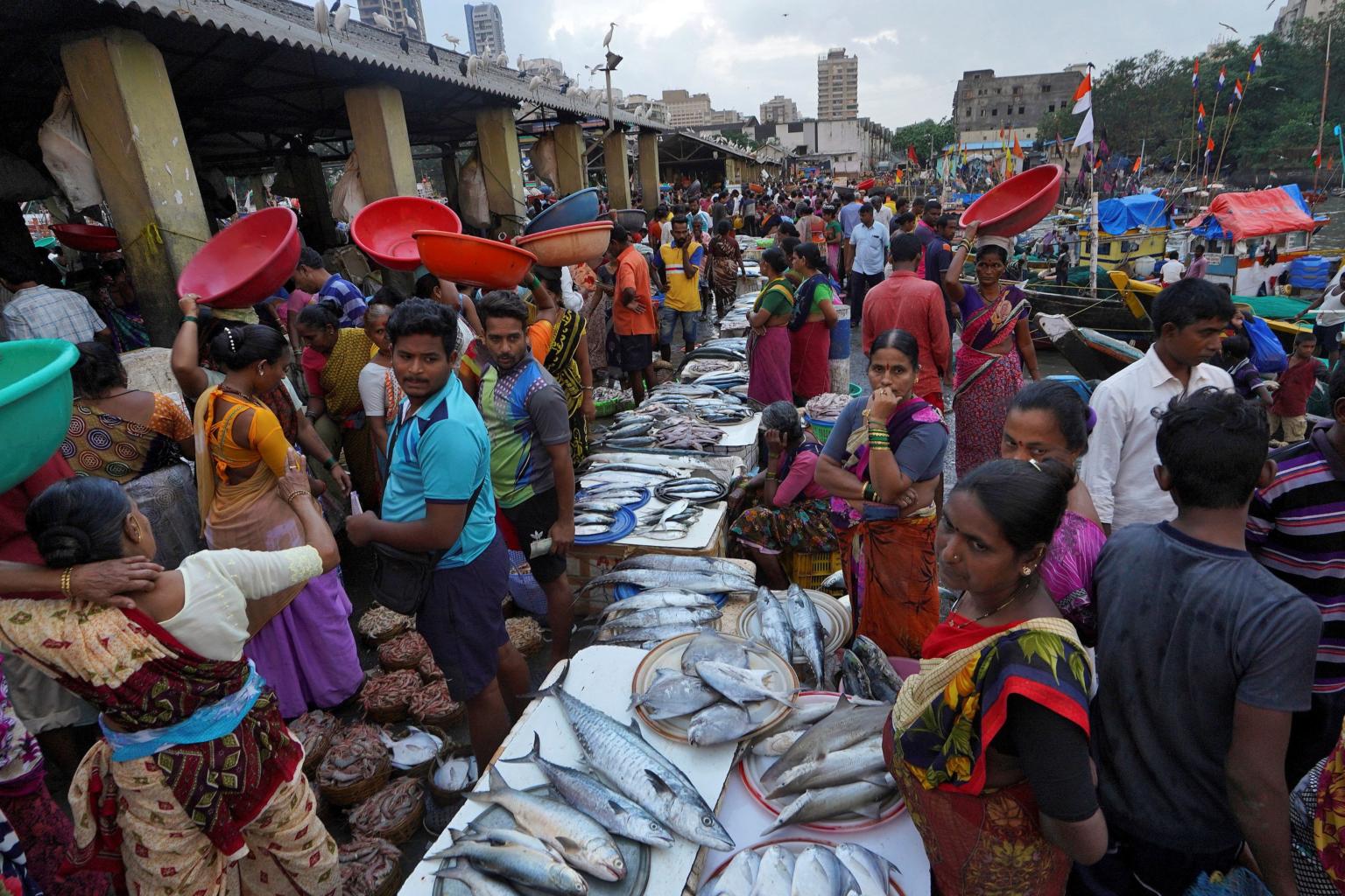 Vendors wait for customers in a wholesale market at a fish harbour in India on Nov 8, 2019. At the heart of India's problems is a slump in consumption following a combination of policy missteps.