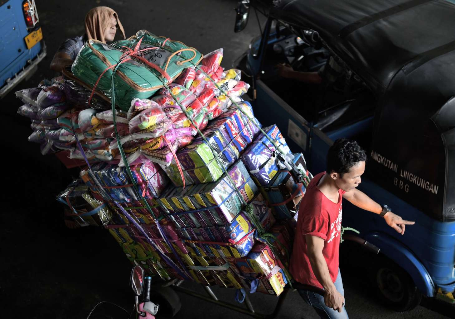 A cart filled with textile packages at South-east Asia's largest textile wholesale center, Tanah Abang market, in Jakarta.