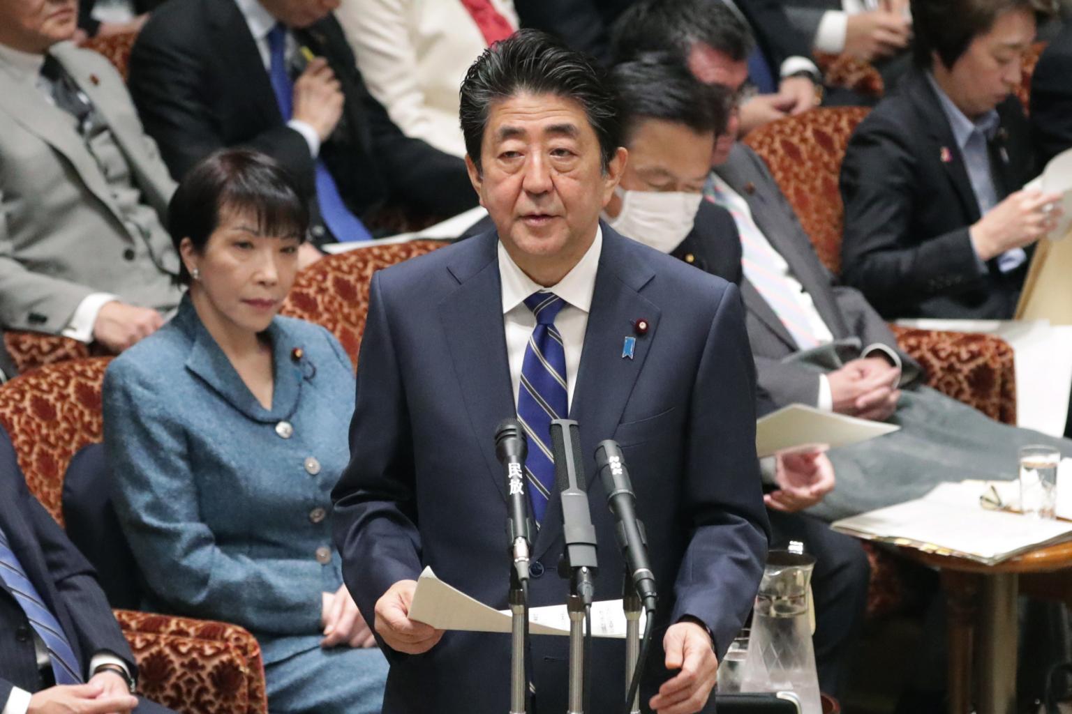Japanese Prime Minister Shinzo Abe explains the government's response to the coronavirus epidemic to opposition parties during a parliamentary budget committee in Tokyo, Japan, on March 2, 2020.