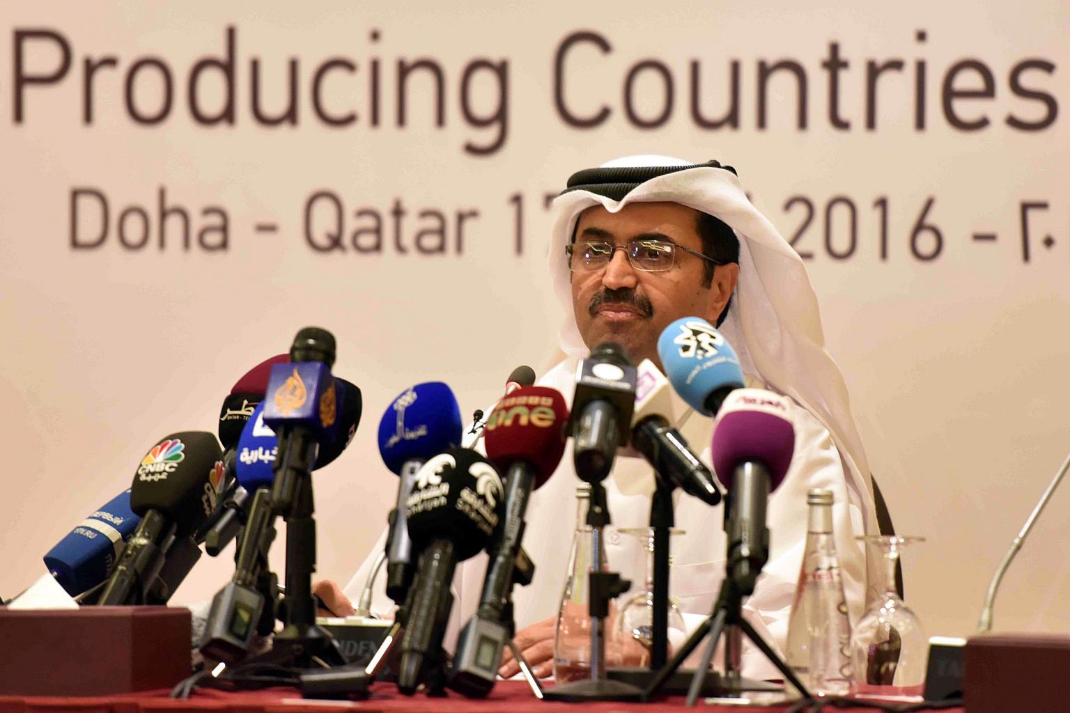 Qatar's Energy Minister Mohammed bin Saleh al-Sada at the press conference in Doha, on April 17, 2016.