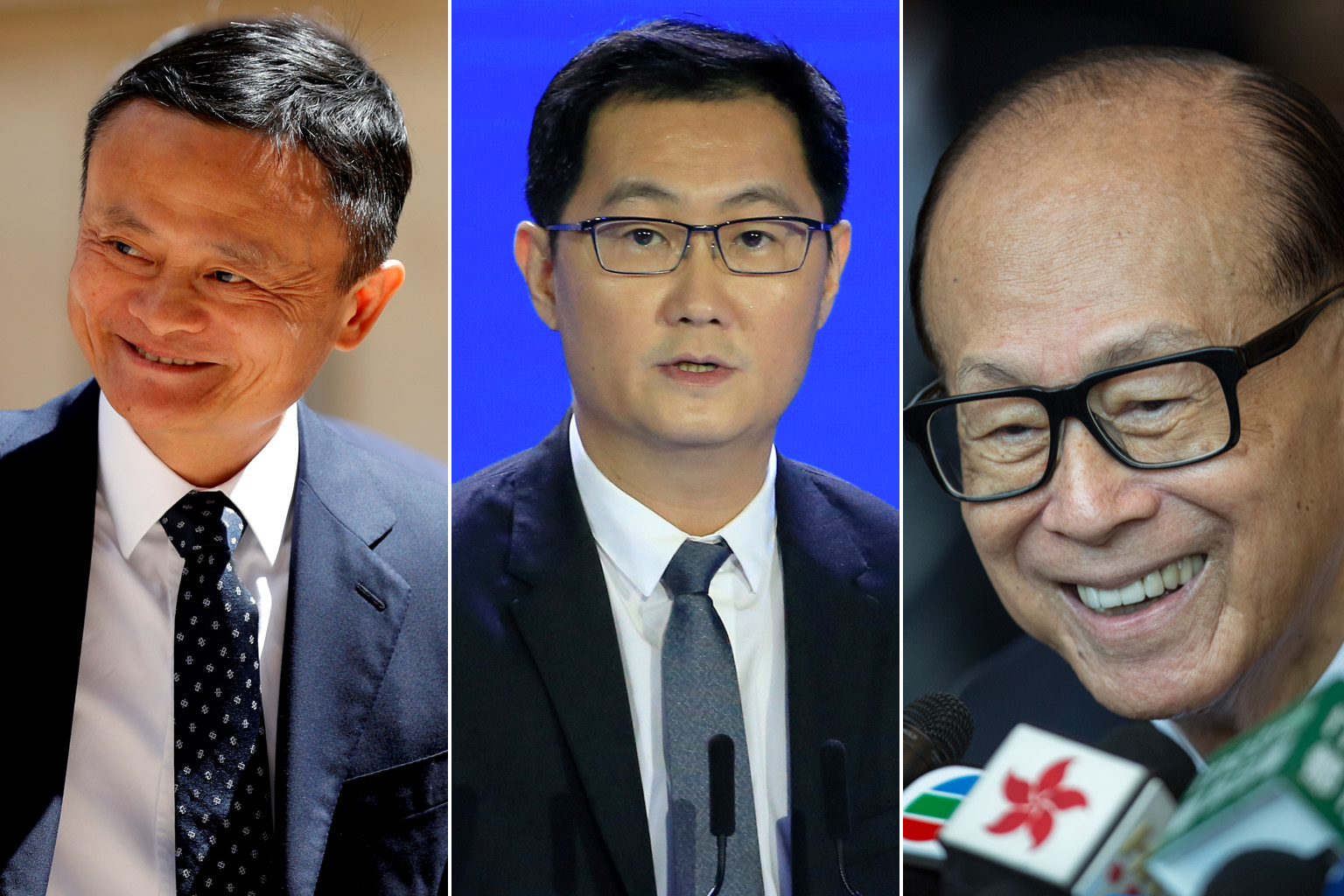 China mainland's Jack Ma (far left) of Alibaba Group and Pony Ma (centre) of Tencent Holdings have climbed up the wealth ratings, while Hong Kong tycoon Li Ka-shing, once Asia's richest person, has slid down by comparison.