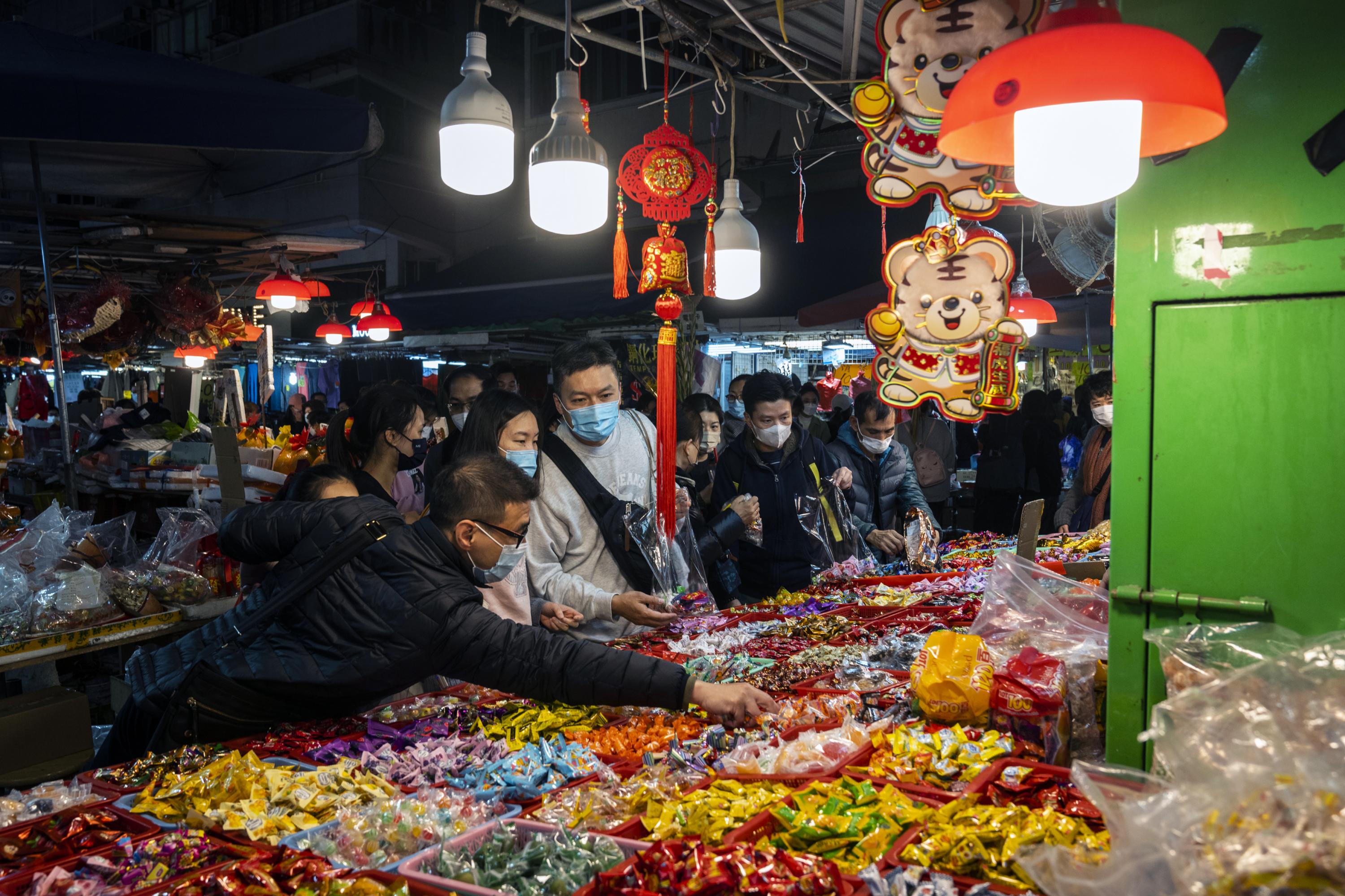 Shoppers at a street stall in Hong Kong on Jan 30, ahead of Chinese New Year.