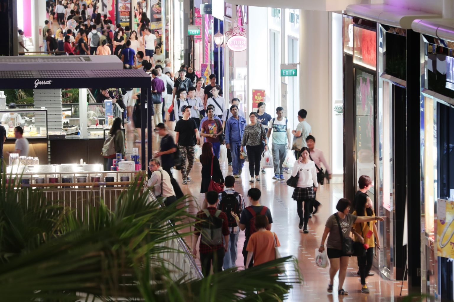 Shoppers at Jurong Point, on Feb 18, 2019. Excluding motor vehicles, retail sales dropped 2 per cent year on year.