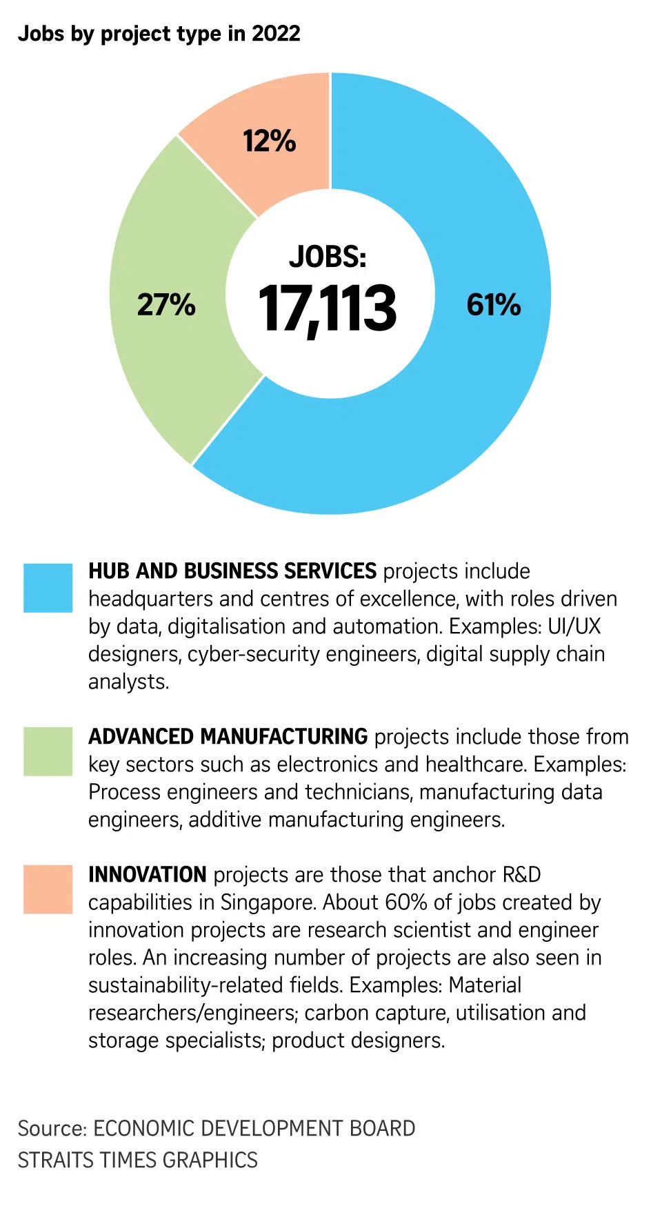 Of the jobs created, about 70 per cent are for professionals, managers, executives and technicians, with a majority of these expected to be taken up by local workers.
