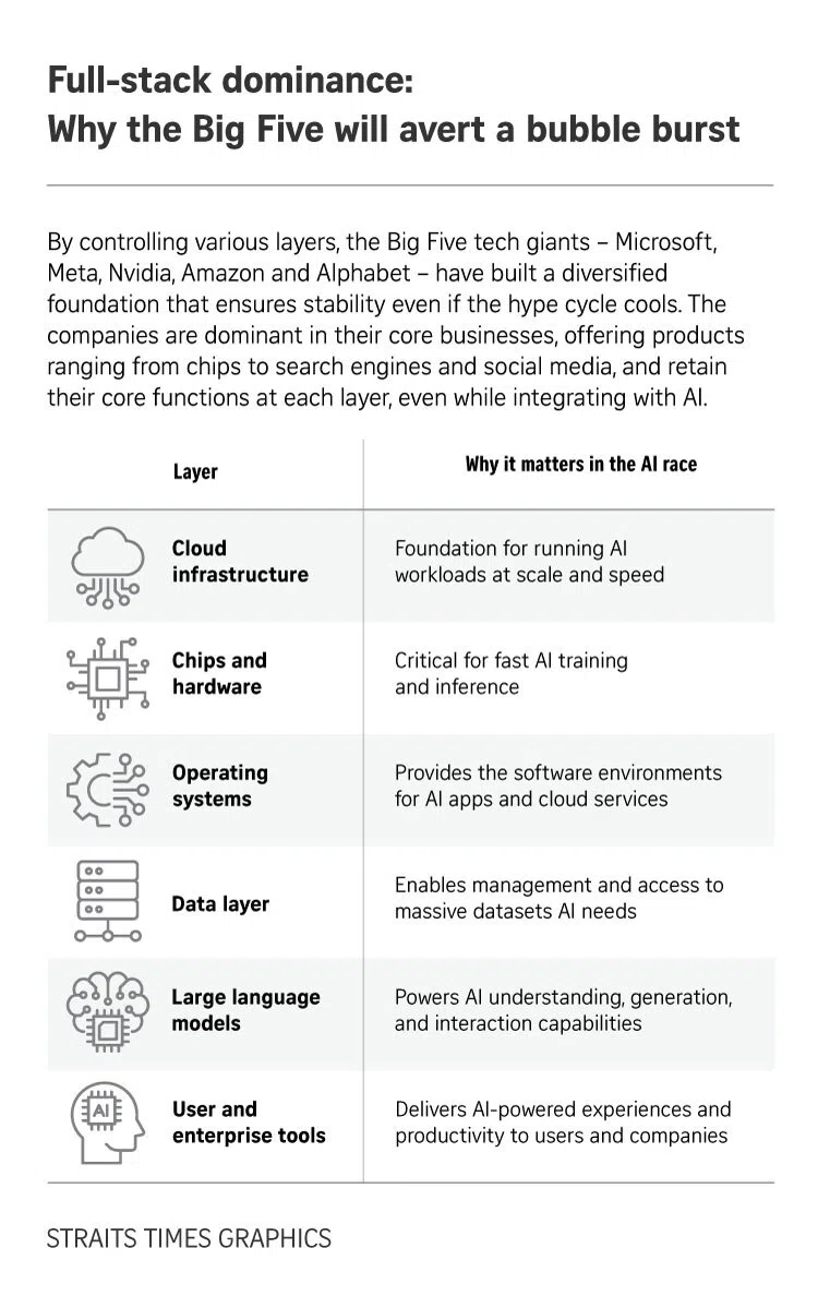 SINGAPORE - The year 2025 has been a banner one for tech, with artificial intelligence (AI) making the most impact on businesses. A government survey showed that small and medium-sized enterprises in Singapore have adopted AI at an average of three business uses, and other types of organisations are using it in five. Most companies are tapping the technology for information technology, customer service and finance.