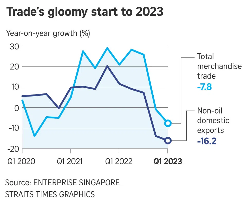 In tandem, Singapore’s economy cooled in the first quarter and is forecast to grow by 0.5 per cent to 2.5 per cent in 2023